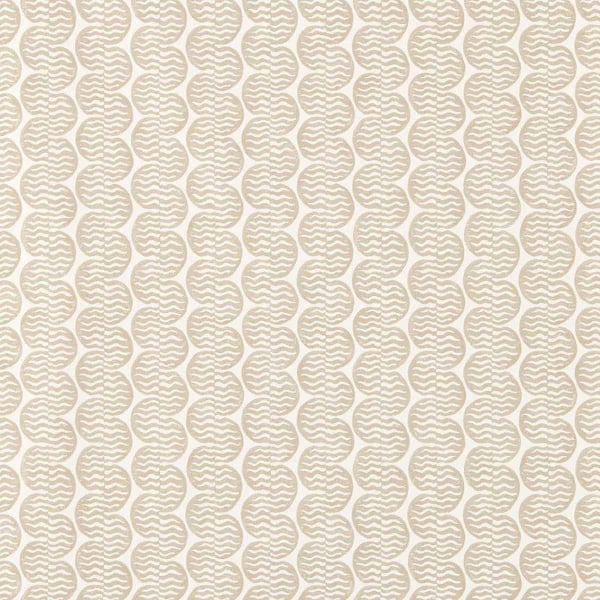 Raft Stripe is a wallpaper structured by a geometric stripe formed of repetitive elements inspired by the undulations of water. The pattern, derived from a linoleum print, evokes a series of stylized waves that follow one another with regularity. Signed Scion, it captures a natural movement in a rhythmic, almost meditative composition.