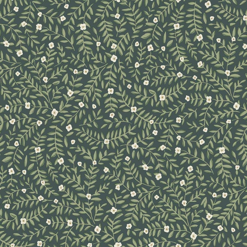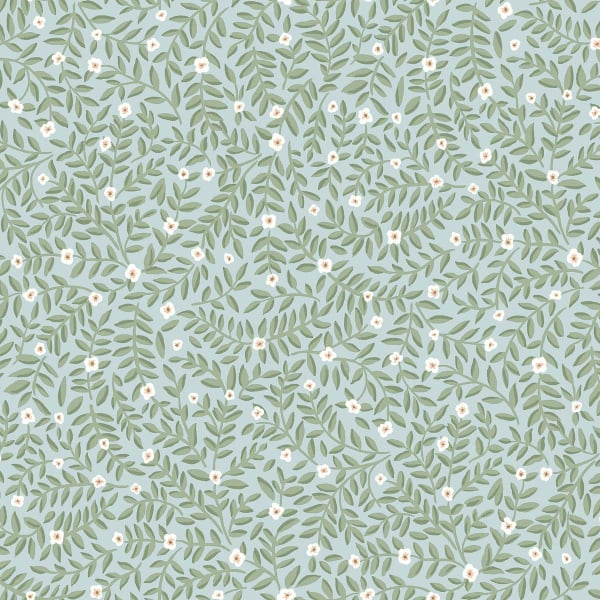 A dense floral pattern extends over the Elodie adhesive wallpaper, published by Rifle Paper Co. Slender, undulating stems, adorned with supple foliage and miniature flowers, run across the surface. The plant forms intertwine naturally, as if carried along in a light and continuous movement. This self-adhesive wall covering is inspired by a delicate herbarium, punctuated by the repetition of botanical details.