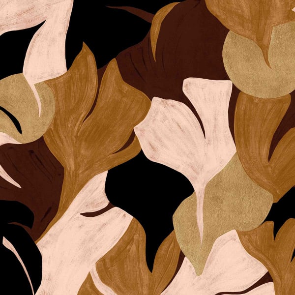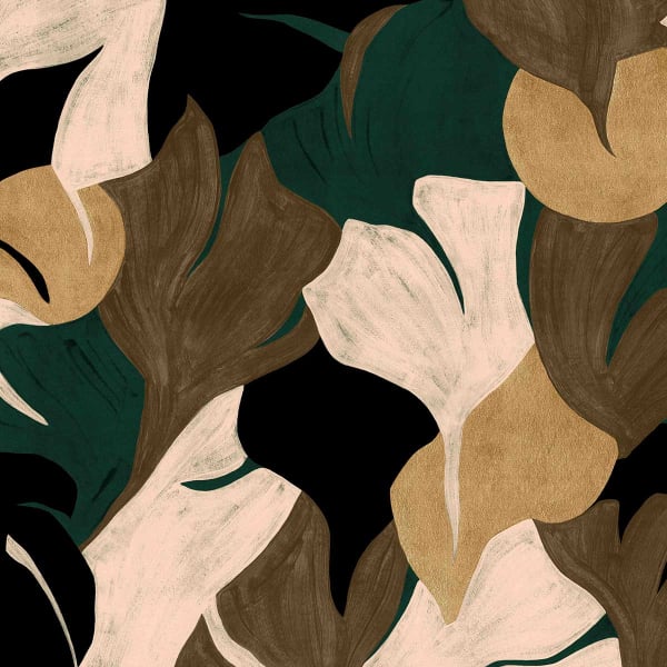 The L'Éveil panoramic wallpaper evokes a reinvented nature, carried by ample foliage with fluid contours. The abstract and pictorial design is part of a dense and rhythmic composition inspired by the shape of the leaves of the ginkgo biloba tree, a symbol of peace and resilience.
