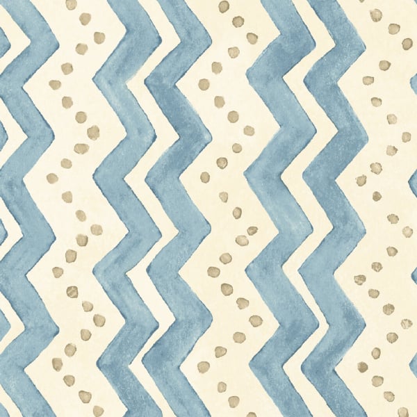 The Ziggy wallpaper reveals an ethnic-inspired geometric pattern. An alternation of dynamic zigzags and regularly arranged dots evokes an artisanal aesthetic. The design features a repetitive and graphic movement, animated by lines of various sizes. Designed by Threads, this wallpaper reflects a contemporary, structured and vibrant vision.