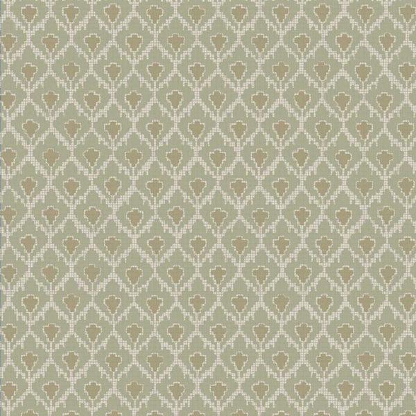 The Svea wallpaper features a discreet geometric pattern inspired by old textile wefts. Each diamond houses a stylized floral shape and evokes a delicate tapestry design. This structured network creates a visual impression that is both soft and rhythmic. Boråstapeter presents a decor with classic charm, where the rigor of the design mixes with ornamental finesse.
