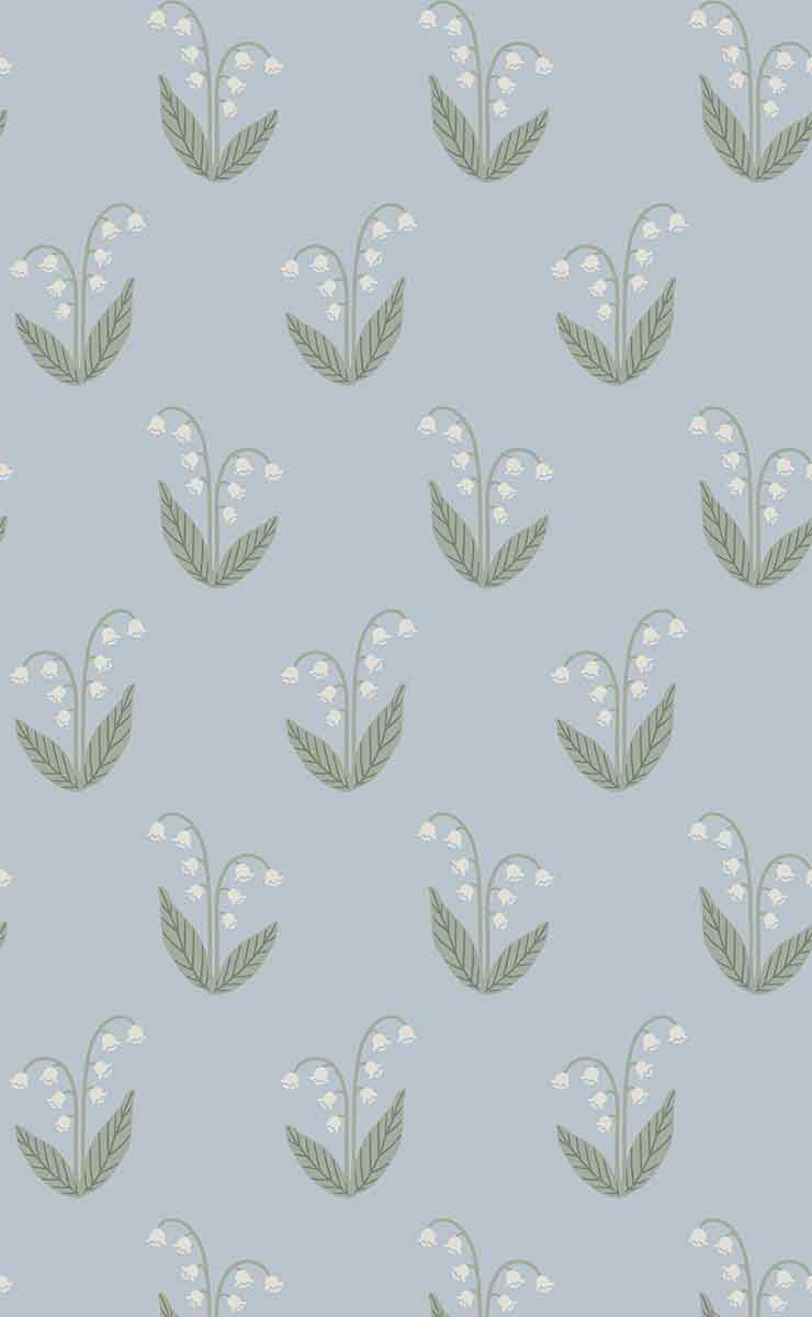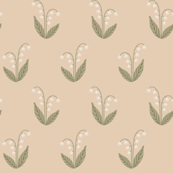 On a discreet background, the Lilly wallpaper unfolds a stylized floral pattern of great softness. Each lily of the valley rises gracefully, composed of delicately arched stems and tapered leaves. Signed Sandberg, this design evokes ancient herbariums in a refined version. The regular repetition of the figures instills a feeling of calm, like a vegetal murmur.