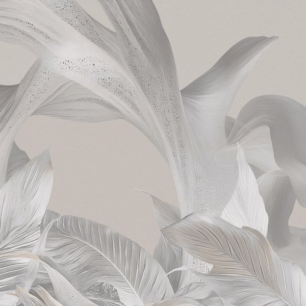 The panoramic wallpaper Sandstone Dreams features a graphic and abundant plant composition. Large stylized leaves intertwine in a fluid and airy forest movement. The sinuous and ribbed contours delicately recall the finesse of a botanical engraving. Signed by Londonart, the whole stands out as a captivating decor, both evocative and soothing.