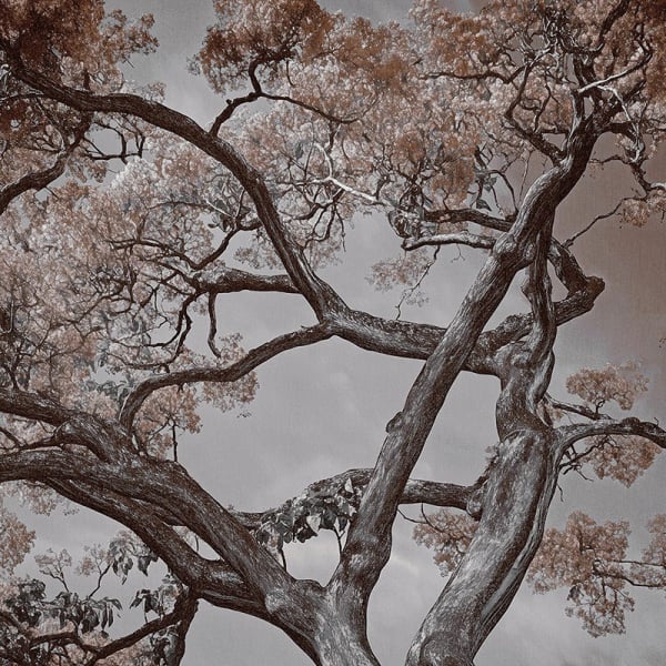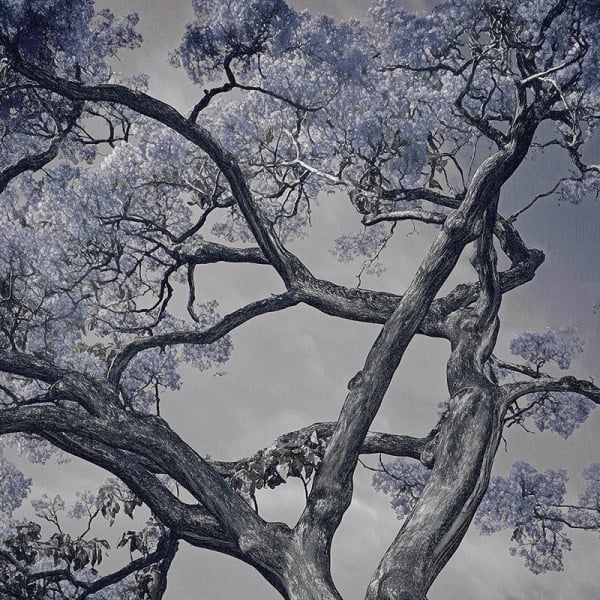 Londonart's Arborescent Labyrinth panoramic wallpaper depicts the opulent branch of a tree, captured from the ground. The branches soar in a complex and majestic structure. Each curve of the trunk dialogues with the diffused light and composes a scene that is both raw and airy. This wallpaper is a tribute to the organic strength of the plant.