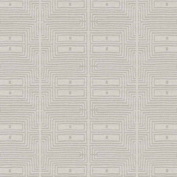 Le papier peint Serica de Masureel présente un motif géométrique où des rectangles imbriqués dessinent une structure labyrinthique rythmée. Chaque composition, ponctuée d'une discrète ligne pointillée, apporte une subtile touche graphique. Ce revêtement mural évoque l'univers du tissage, dans un équilibre subtil entre rigueur et mouvement. La répétition du motif crée une trame hypnotique et maîtrisée.