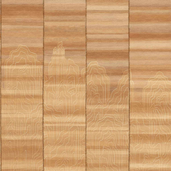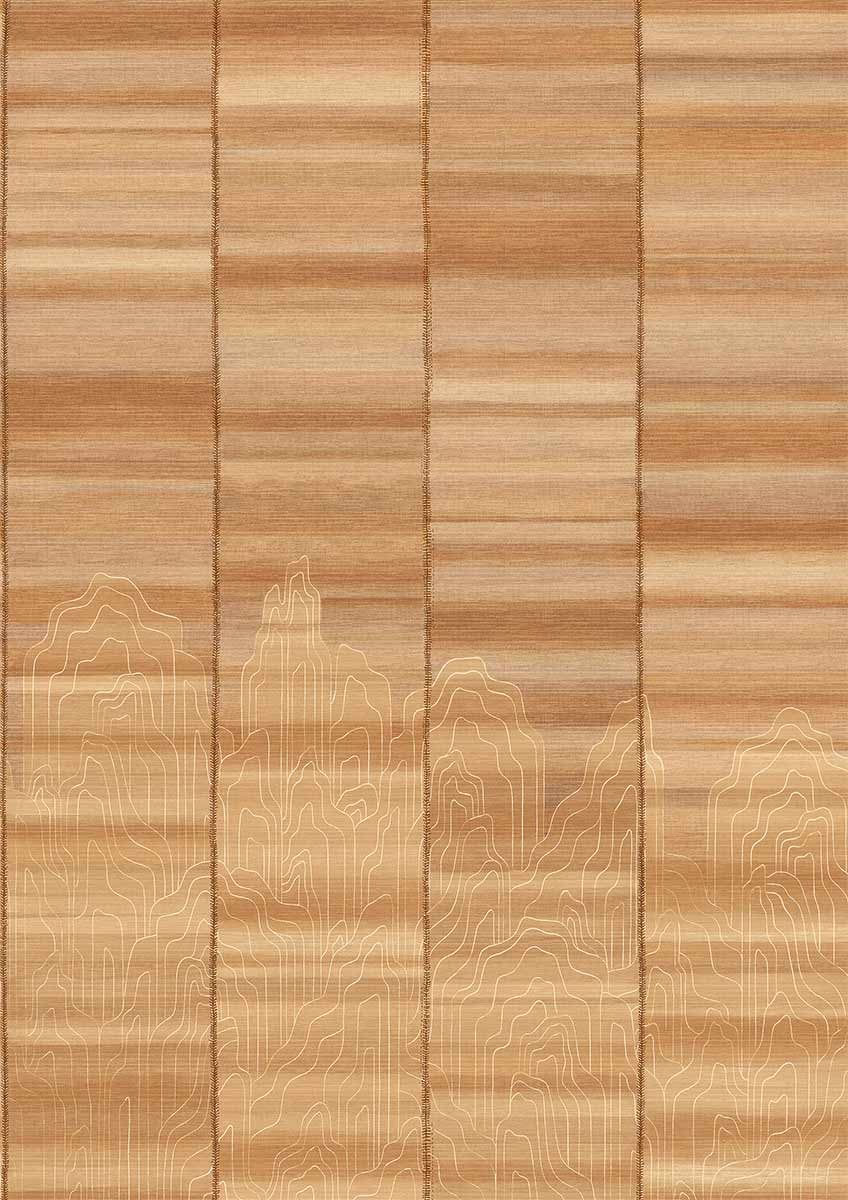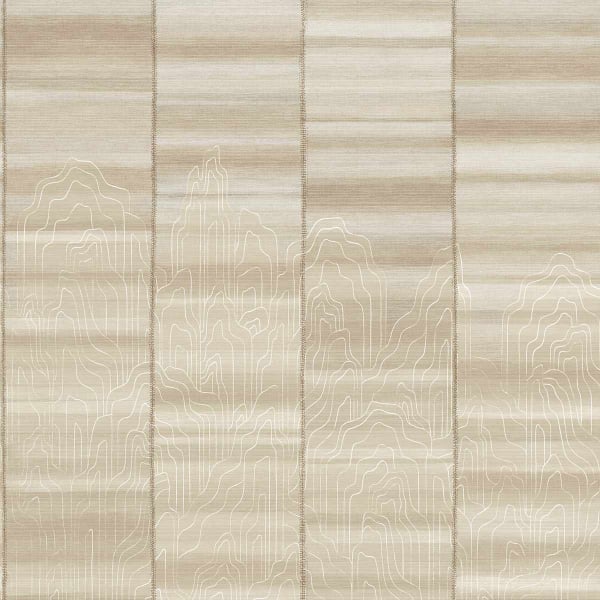 The Iwa wallpaper features a graphic pattern of flowing lines, inspired by rock strata. The decor comes alive with an abstract landscape with superimposed contours, as if drawn freehand. The structured surface evokes woven material, in a contemplative spirit. This composition by Masureel captures the eye in a peaceful movement.