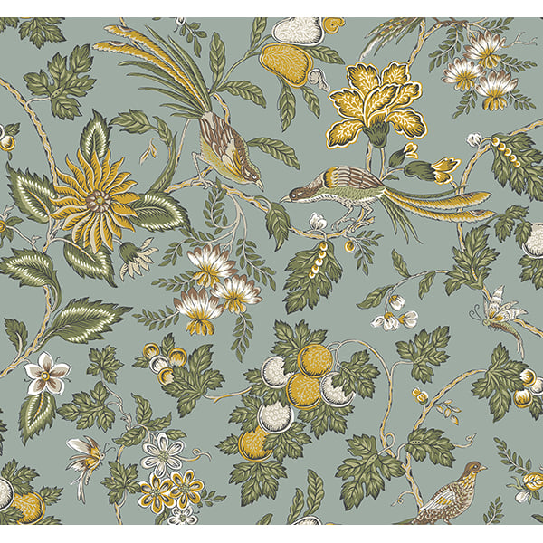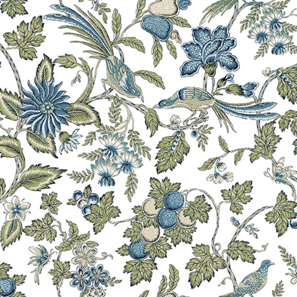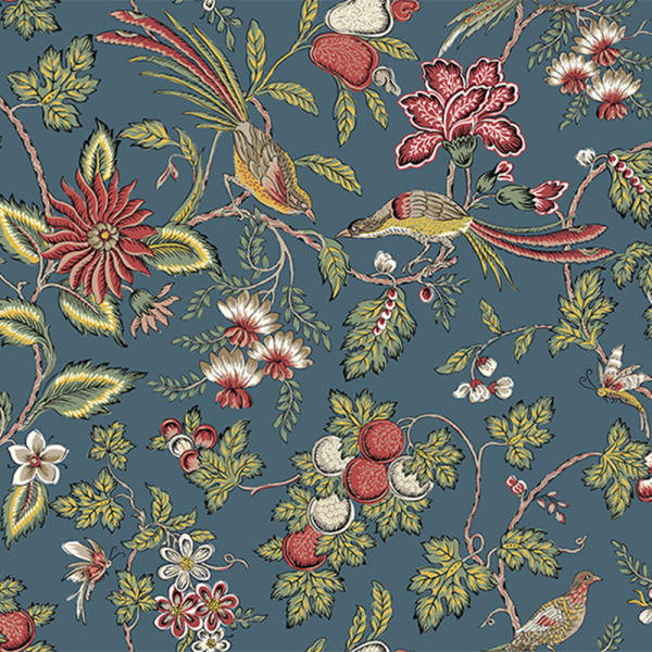 In a controlled exuberance, Parterre unfolds a Jacobian motif with generous floral figures. This wallpaper from York Wallcoverings shows birds perched on fruity branches, surrounded by opulent foliage. Each line is drawn in a balance between decorative richness and graphic refinement. This wallcovering infuses the walls with narrative depth.