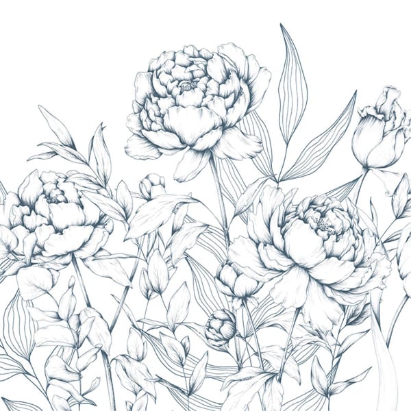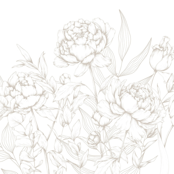 The panoramic wallpaper Caresse de Pivoines reveals a floral composition imbued with sweetness. Large peonies with meticulous lines rise among light foliage, in the spirit of a botanical board. Each line evokes the delicacy of a pencil drawing. Signed Acte Deco, the plant motif unfolds in silence, as if suspended in time.