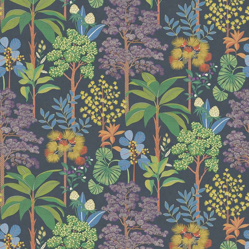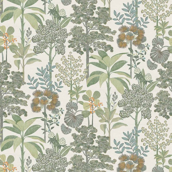 Osborne & Little unfolds a stylized and meticulous plant landscape in the Arboreta wallpaper. Trees with inventive branches and exotic foliage respond to each other in a graphic symphony. Each element seems to be drawn with a pen and reveals the attention paid to textures and volumes. The pattern is organized in a rhythmic verticality, like an imaginary forest emerging from a waking dream.