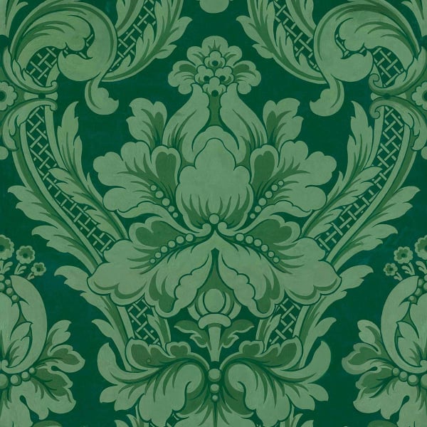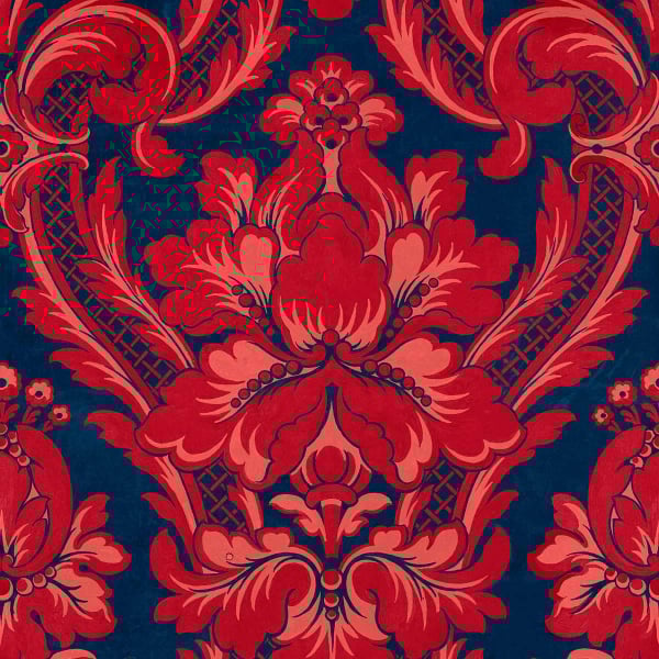 Venetian Damask, a wallpaper from Coordonné, stands out for its Baroque-inspired floral pattern. A spacious and rigorously symmetrical composition is centered around a majestic corolla, featuring palm leaves, scrollwork, and large leaves with generous curves. The whole composition follows a vertical axis, subtly punctuated by a checkered background that deepens the perspective and guides the eye. From the soft outline of the petals to the meticulously drawn arabesques, each line adds depth to the design and imbues the wall with a vibrant presence.