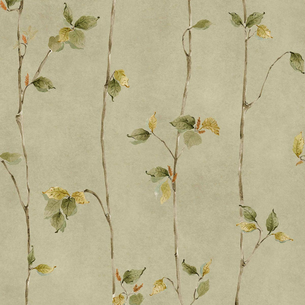 On the Azahar wallpaper, designed by Coordonné, slender stems structure the space with a regular vertical rhythm. Its pattern features a slender plant composition, with long branches rising to form an airy network. Delicate leaves, sometimes open, sometimes tilted, lend the whole composition a natural sense of movement. The meticulous lines, reminiscent of botanical illustration, stand out against a subtly aged background.