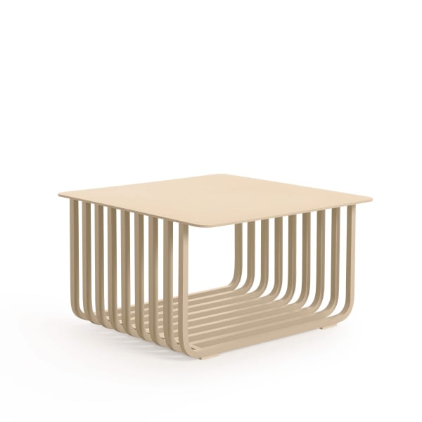 Grill es una mesa baja esculpida en torno a un motivo lineal gráfico. Los tubos y la bandeja de aluminio termolacado componen una estructura ligera y continua. El ritmo regular de las curvas dibuja una silueta abierta, en una sutil armonía visual. Esta pieza juega con la alternancia del vacío y el volumen, y refleja la experiencia de Diabla.