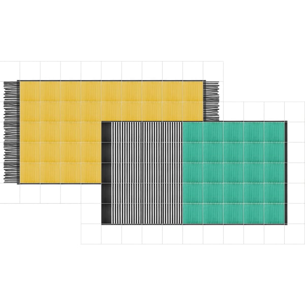 La alfombra doble grande es una increíble creación del arquitecto Giuliano Andrea dell'Uva en colaboración con la casa italiana Francesco de Maio. Una vez ensambladas, las losas cuadradas de 20 centímetros forman dos alfombras superpuestas de gran tamaño. Se forma entonces un juego de oposiciones de rayas pintadas a mano y zonas planas, que llevan el gesto preciso del pincel del artesano. Esta composición única se presta con fantasía a los proyectos de decoración más grandes.