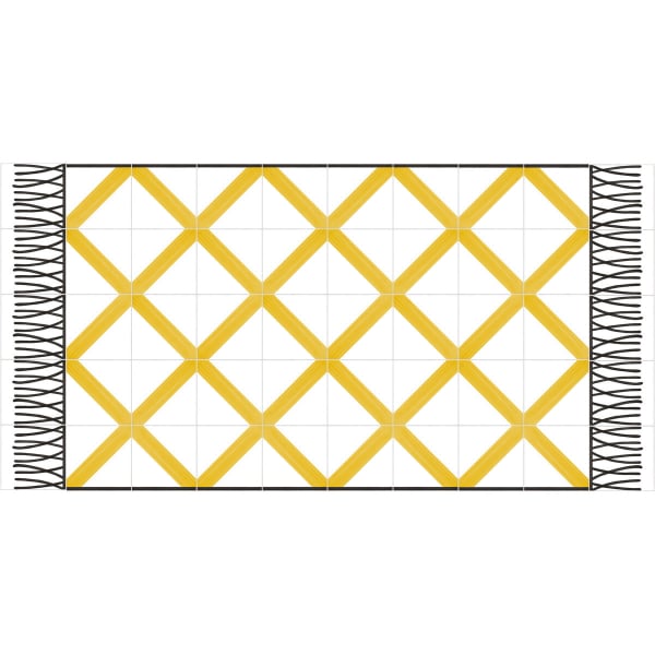 El arquitecto Giuliano Andrea dell'Uva, en colaboración con Francesco de Maio, imagina una composición de baldosas cerámicas brillantes Carpet Cross 1. Una vez ensambladas, las baldosas forman una sorprendente alfombra con un patrón cuadriculado de color liso, sobre un fondo blanco. En cada extremo se dibujan franjas que se cruzan. Realizada y pintada a mano, la alfombra Carpet Cross 1 está formada por baldosas de 20 centímetros de cada lado.