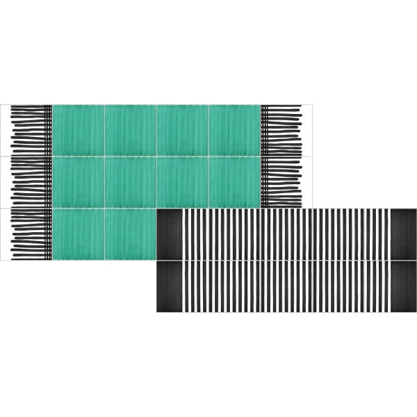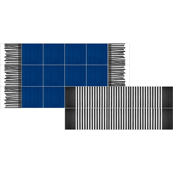 Carpet Double Stripes es una sorprendente composición de baldosas cerámicas brillantes diseñada por el arquitecto Giuliano Andrea dell'Uva en colaboración con la casa italiana Francesco de Maio. Fabricadas y pintadas a mano, una vez montadas, las baldosas cuadradas de 20 centímetros representan dos alfombras superpuestas una sobre otra. La primera alfombra es de un color liso intenso con flecos rectos en los extremos. La segunda alfombra ubicada arriba se compone de rayas gráficas y contrastantes.