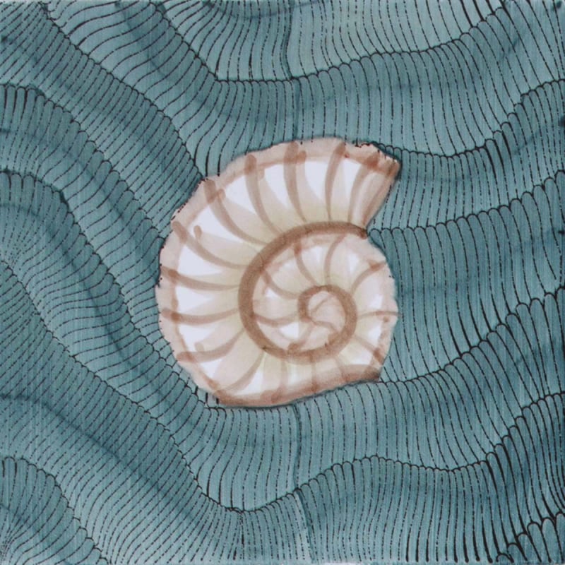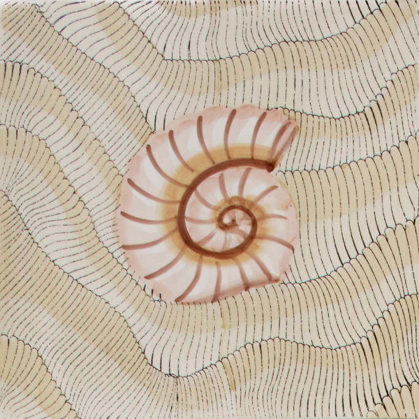 El revestimiento cerámico Thalassa Decoro 4 es fruto de la colaboración entre Cristina Celestino y Giovanni De Maio. El artista italiano busca hacer resonar la riqueza del fondo marino. Los fósiles procedentes directamente de un mundo antiguo son la prueba de la voluntad de poner de relieve la fauna olvidada.