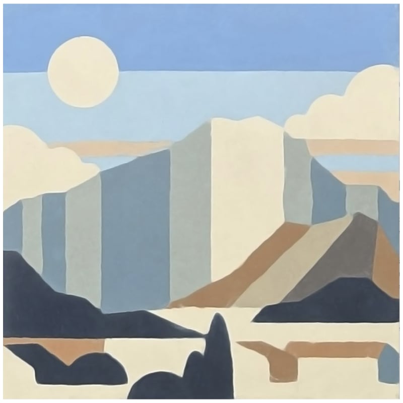 Una escena de paisaje montañoso se despliega sobre la baldosa de cemento Sainte-Victoire. Un imponente macizo crea un patrón geométrico, coronado por un cielo tranquilo de líneas limpias. Un sol y unas nubes salpican la composición, mientras que unas colinas oscuras estructuran el primer plano. La casa Carocim garantiza la fabricación a mano, perpetuando un saber hacer preciso.
