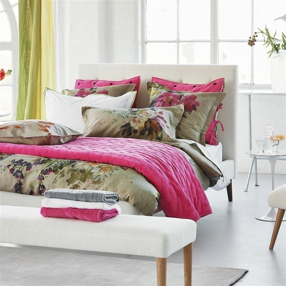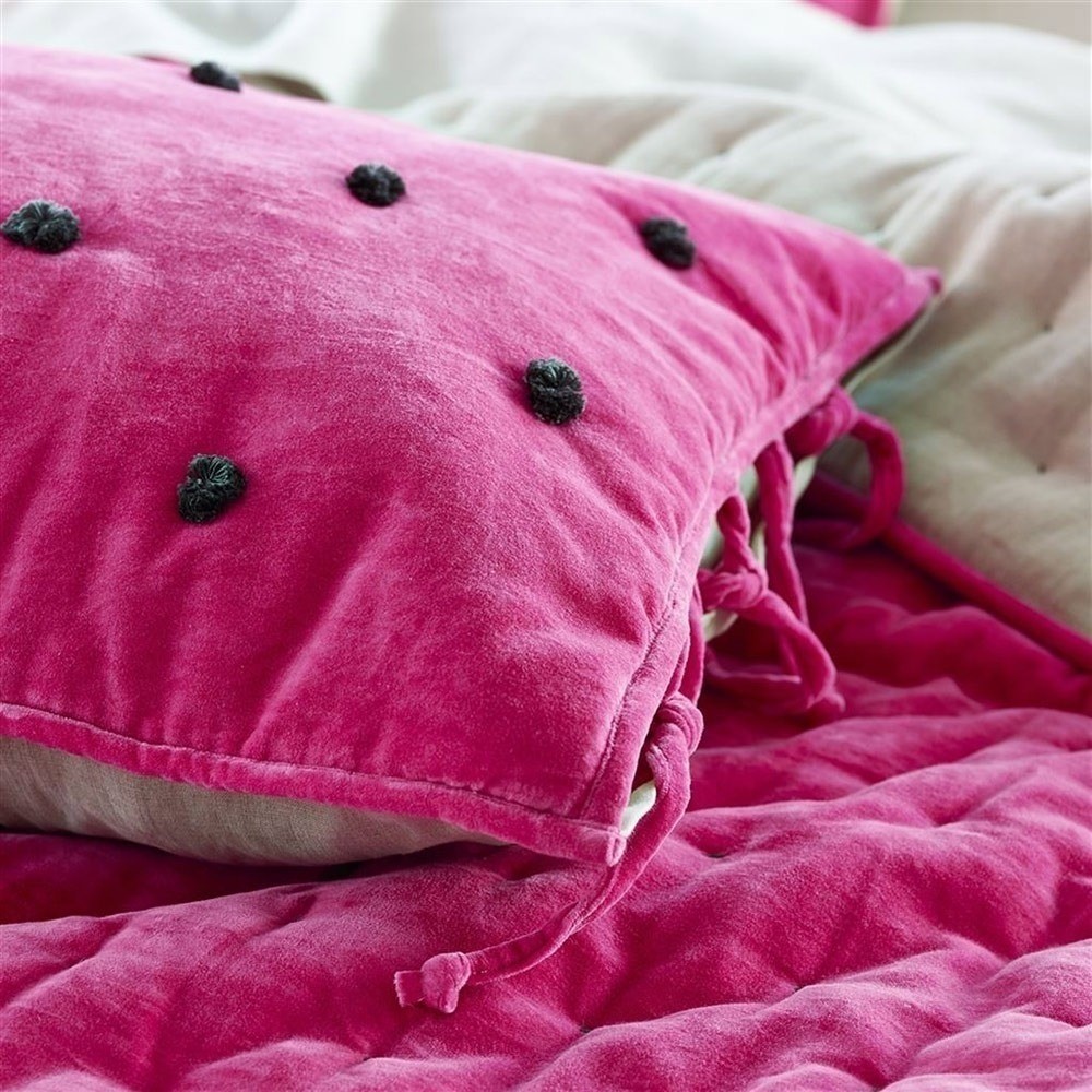 Designers Guild ofrece el cojín cuadrado Sevanti con una cara de terciopelo de algodón acolchado. Este modelo de tacto suave está decorado con pequeños pompones coloridos hechos a mano. La parte trasera de esta lujosa creación en mezcla de lino liso completa el conjunto con una nota sobria.