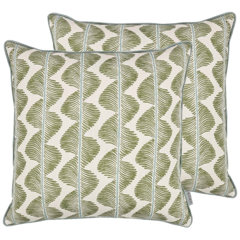 El diseño estriado del cojín Aubin presenta un motivo botánico estilizado. Las hojas gráciles se enrollan alrededor de líneas verticales que dibujan una alternativa llamativa cercana a la raya. Bordeadas por finas nervaduras, las formas se suceden como una composición simétrica. Este modelo cuadrado de Romo está confeccionado con una mezcla de algodón y lino orgánico reciclado.