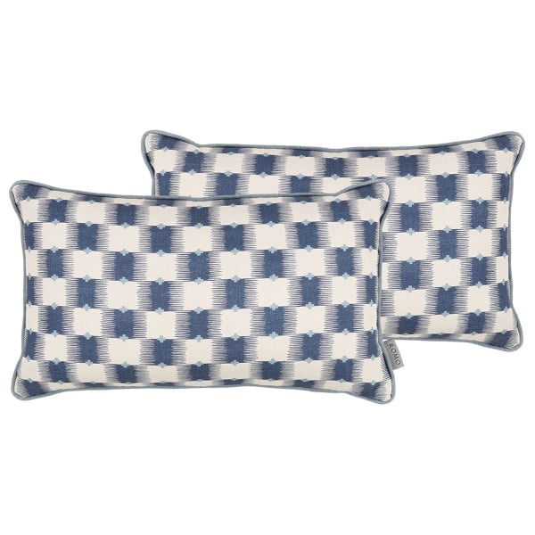 El cojín cuadrado Ziri presenta un patrón geométrico estructurado por una cuadrícula de formas claras y oscuras. Las sombreadas dinámicas animan la superficie, creando un efecto de vibración visual. En cada intersección, una pequeña cruz de color introduce una puntuación regular en el conjunto. Confeccionado en lino y algodón, este modelo de Romo está bordeado con un ribete discreto para un acabado cuidado.