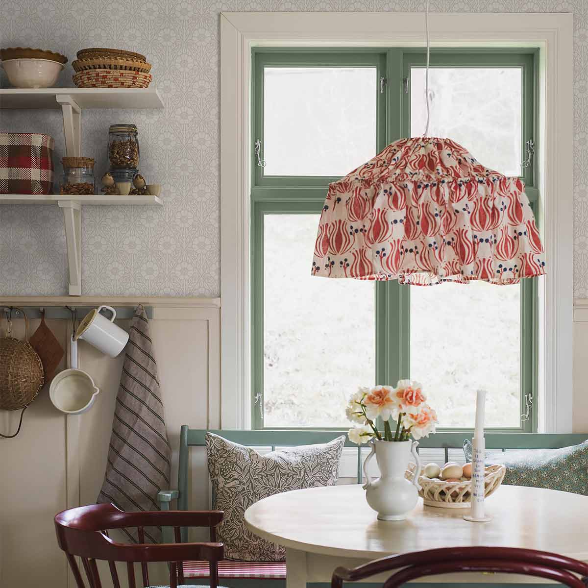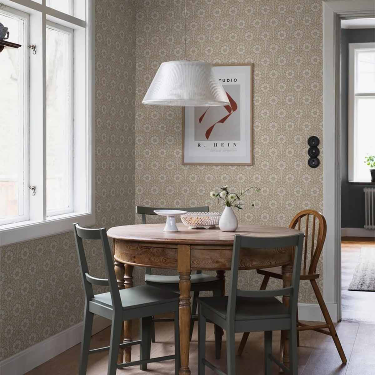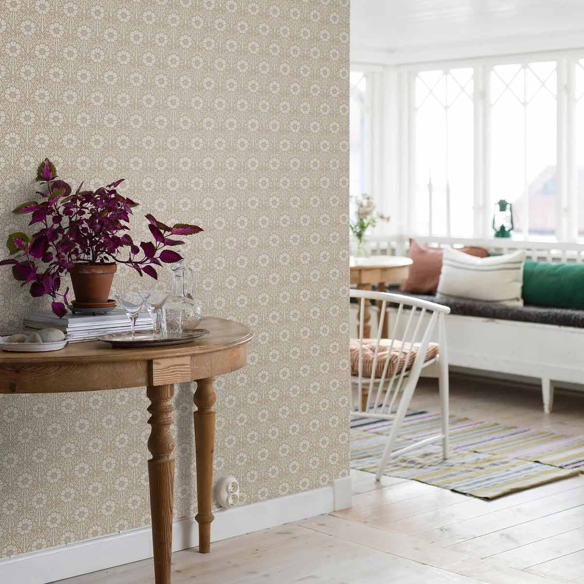 Sumérjase en el espíritu de la década de 1960 con este papel tapiz de alta gama, inspirado en una tela icónica diseñada por Viola Gråsten en 1962. Este patrón, moderno y atemporal, retoma con elegancia la estética de esta época y se integra perfectamente en los interiores contemporáneos.