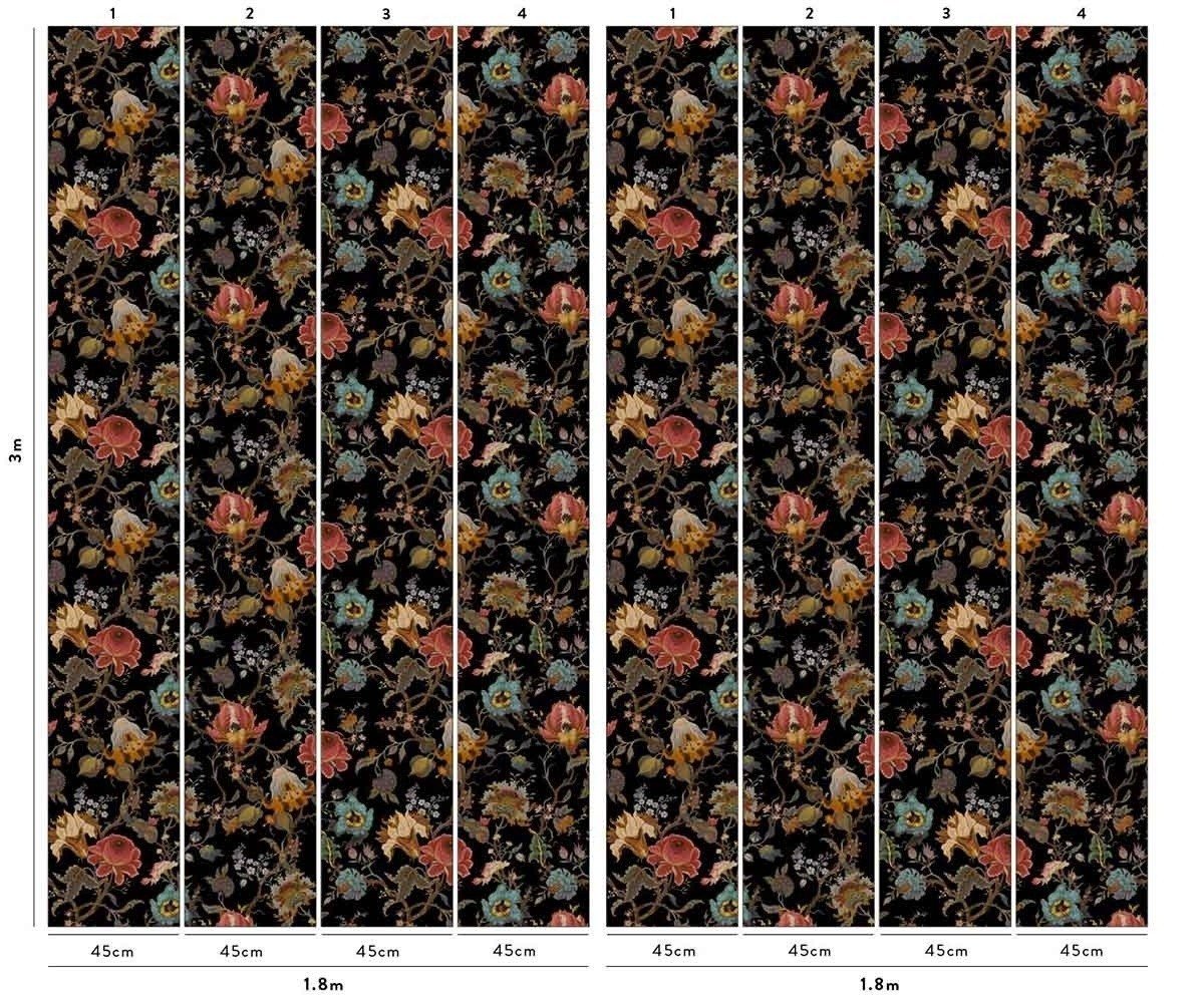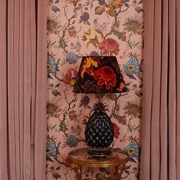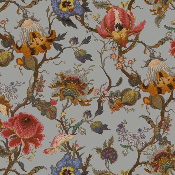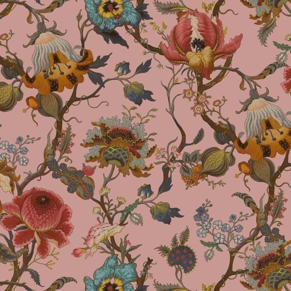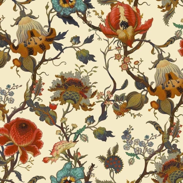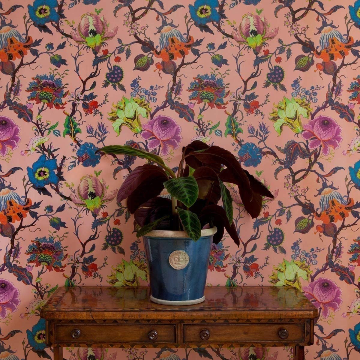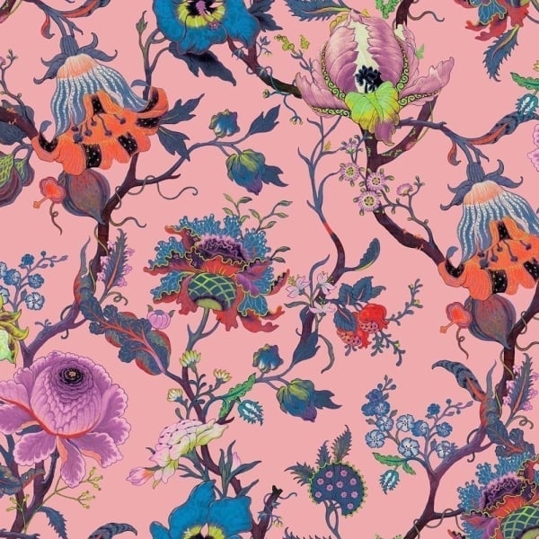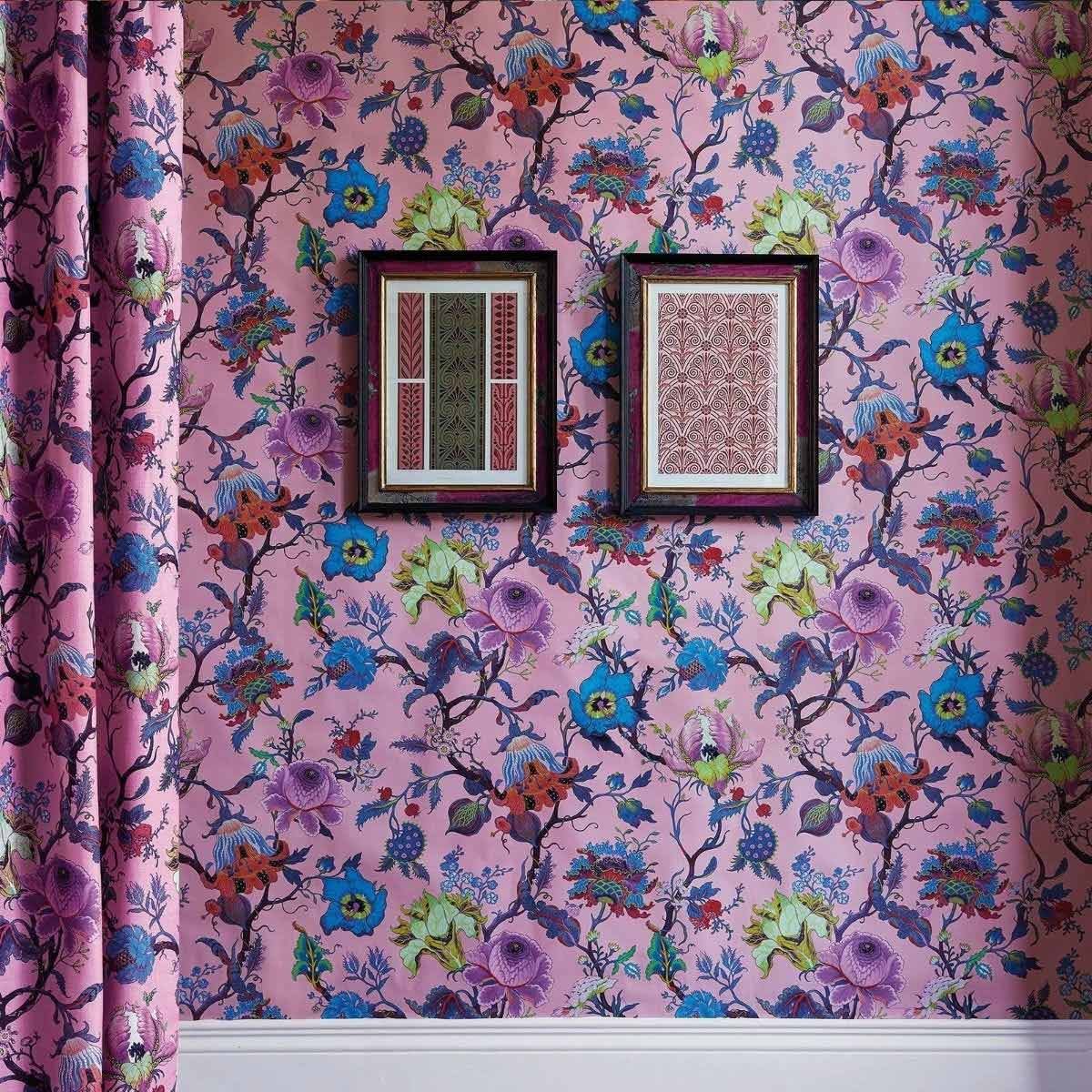 Artemis muestra grandes flores silvestres de inspiración victoriana. Este papel pintado de estilo indio producido por el estudio House of Hackney está inspirado en la obra de William Morris y en el interior de la famosa editora de moda Diana Vreeland. Viene en impresionantes colores psicodélicos.