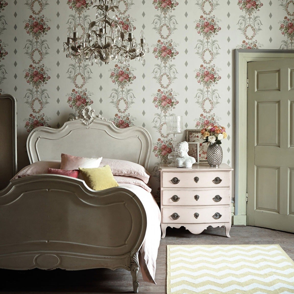 Para Palais, Little Greene se inspira en los paneles de papel pintado franceses de finales del siglo XVII del famoso fabricante Réveillon. Este gran dibujo de ramos de flores rodeados de guirnaldas, rombos y arabescos está impreso sobre un fondo crema. Este papel pintado de alta gama está disponible en varios colores suaves que impregnan cualquier habitación de una atmósfera serena, refinada y romántica.