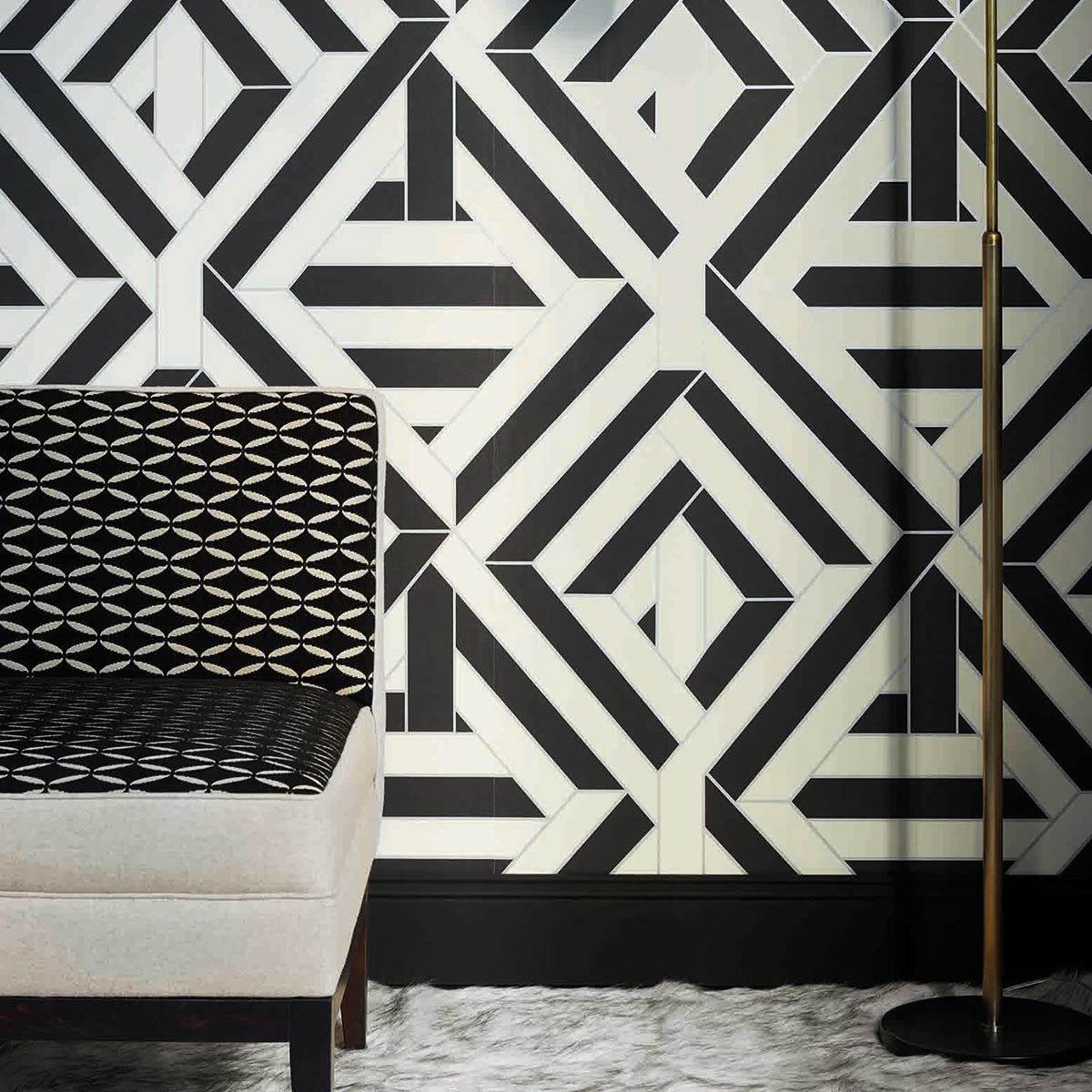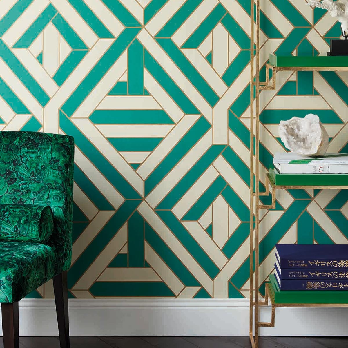 Al publicar el papel tapiz de Wynwood, Nobilis juega maravillosamente con las perspectivas. De la colección Cosmopolitan, este papel pintado presenta un magnífico patrón geométrico. Podemos ver grandes franjas formando rombos.