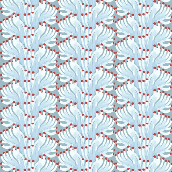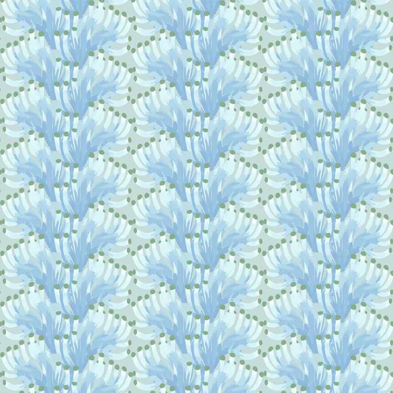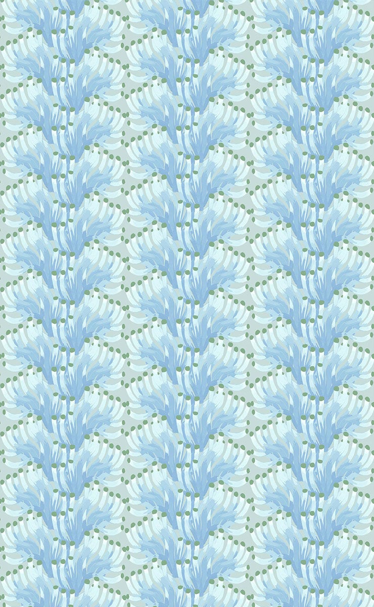 El papel pintado Clorofila, firmado Little Cabari, sumerge los espacios en las profundidades del océano con sus hileras de algas. Los tonos claros del patrón iluminan el fondo oscuro, creando un armonioso juego de contrastes. Los tallos muestran con orgullo un hábito erguido, mientras que las hojas estrechas y oblongas apuntan hacia el techo. Este juego de verticalidad potencia la altura de las paredes, además de su encanto gráfico decorativo.