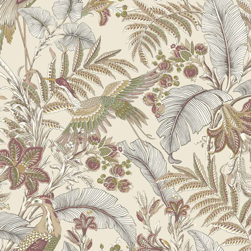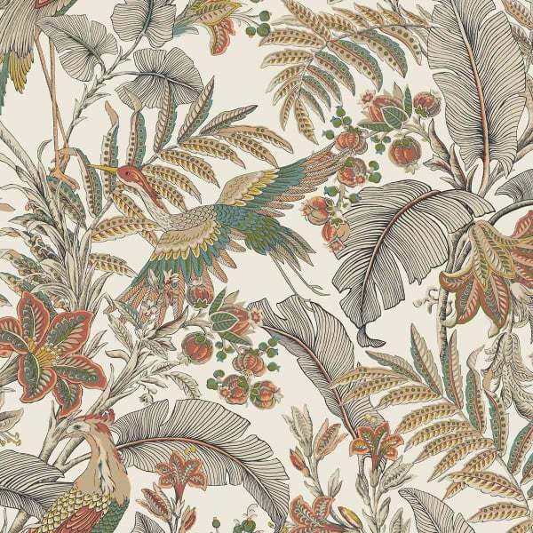 Heronwood abre las paredes a un bosque exuberante donde el follaje exótico, las flores escultóricas y las delicadas frutas florecen con belleza. Las majestuosas garzas deambulan por el follaje, respirando la alegría de vivir. Cada detalle de este papel pintado de York Wallcoverings evoca la riqueza de las tradiciones artesanales, ancladas en un imaginario cultural de resonancias lejanas.