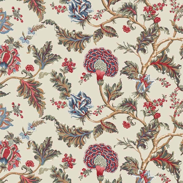 El papel pintado Monroe despliega un estampado floral jacobino, compuesto por hojas exuberantes y flores de múltiples capas. Las ramas sinuosas trazan un camino libre, en una composición vegetal de proporciones impresionantes. Cada detalle revela una gran finura de dibujo. Este revestimiento de York Wallcoverings evoca los adornos de los antiguos tejidos decorativos.