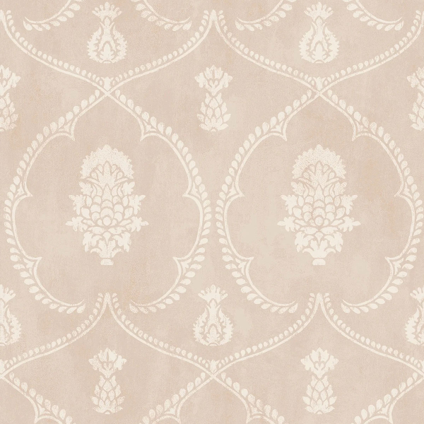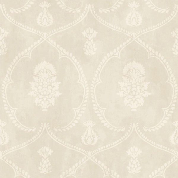 Firmado por York Wallcoverings, Royal Damask es un papel pintado con un estampado floral estilizado organizado en un auténtico patrón ornamental. Los medallones botánicos, encerrados en arabescos, evocan los grandes códigos decorativos clásicos. Este revestimiento capta la mirada por la repetición controlada de las formas en una estructura con acentos refinados.