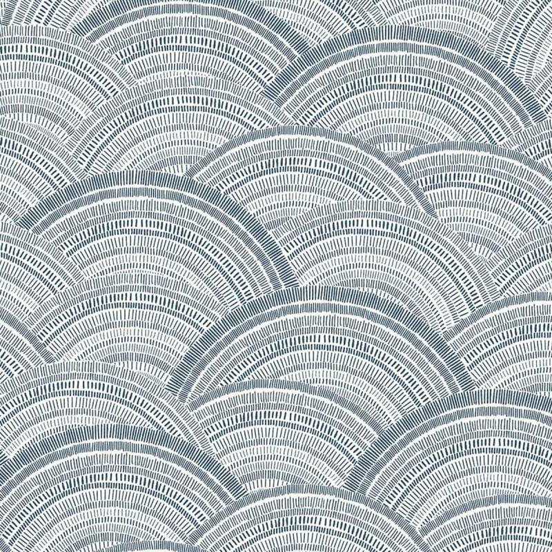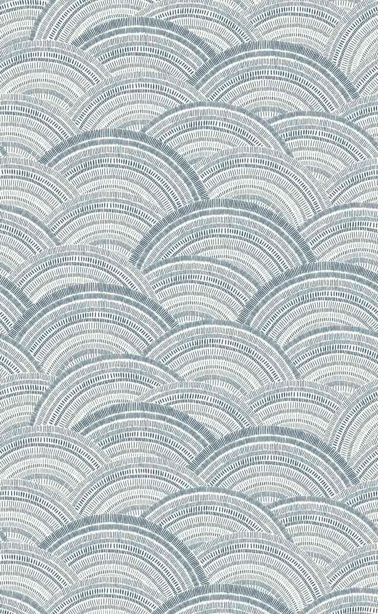 El papel pintado Encircle de A Street presenta semicírculos yuxtapuestos en arcos regulares. Alineados con esmero, los trazos cortos siguen la curvatura de cada motivo. El conjunto geométrico establece un ritmo visual amortiguado, estable y medido. La repetición controlada de las formas revela una superficie texturizada, animada por la precisión del dibujo.