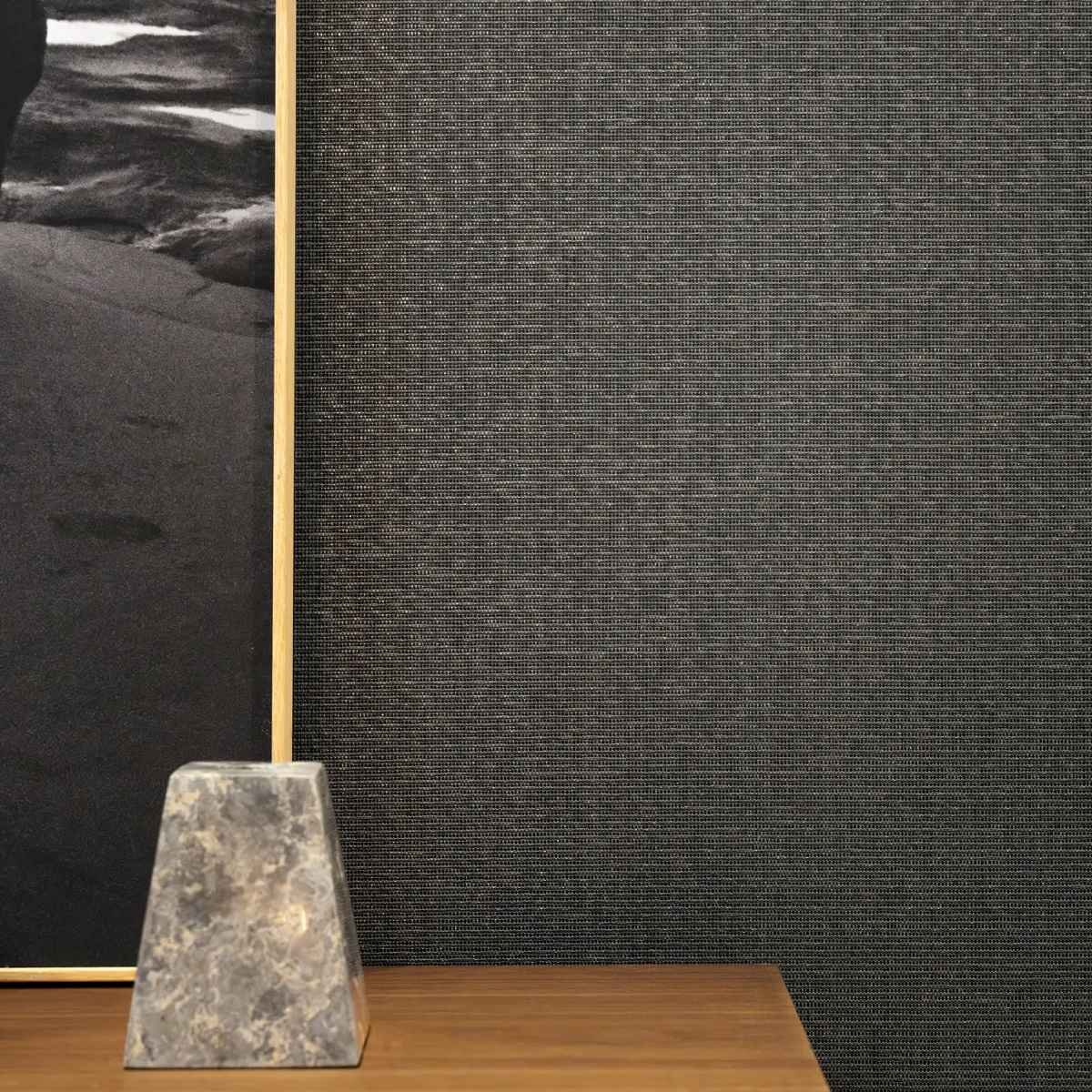 El papel pintado Nexus despliega un estampado textil estructurado de líneas estrechas, que evoca la regularidad de un tejido manual. Cada línea establece un ritmo sutil que modula la superficie sin interrupciones. Este revestimiento mural forma parte de una estética sobria y precisa, fiel al lenguaje discreto de Vescom. La densa trama compone una decoración gráfica, entre textura visual y sugerencia de materia.
