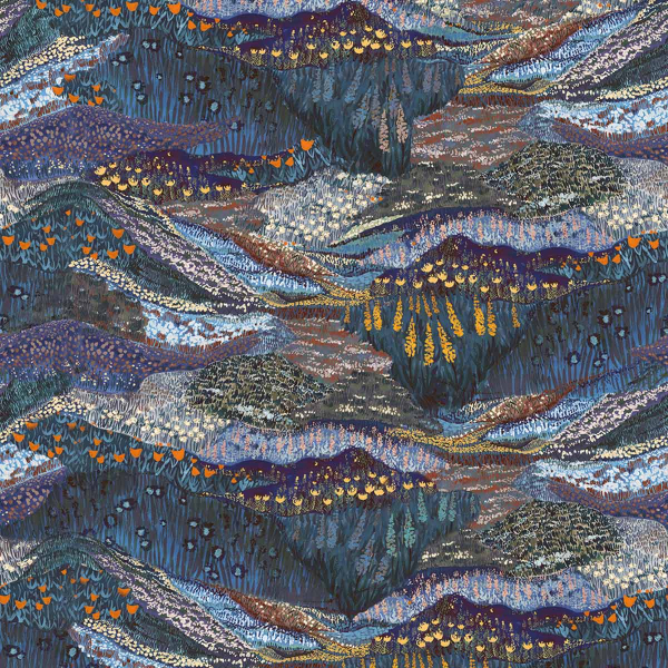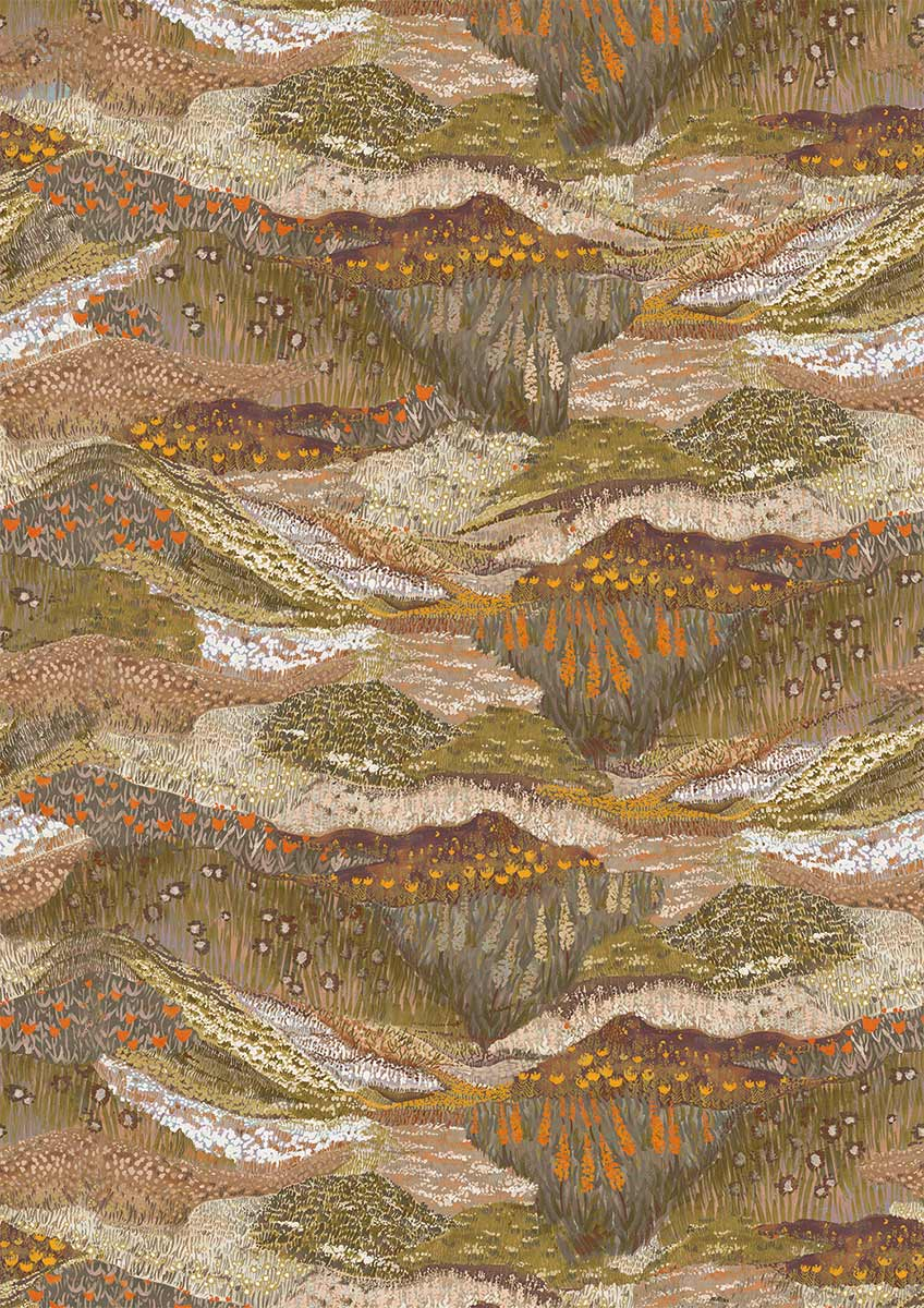 Nuit Botanique es un papel pintado panorámico con un estampado paisajístico compuesto por estratos irregulares que evocan colinas, rocas y relieves vegetales. El dibujo presenta una sucesión de líneas curvas, puntos y sombreados que recuerdan el trabajo del bordado o del lápiz. Cada zona se distingue por una densidad de trazos variada, creando un efecto de movimiento fluido. Initiales firma esta composición, en la que cada detalle refuerza el equilibrio entre estructura y ligereza.