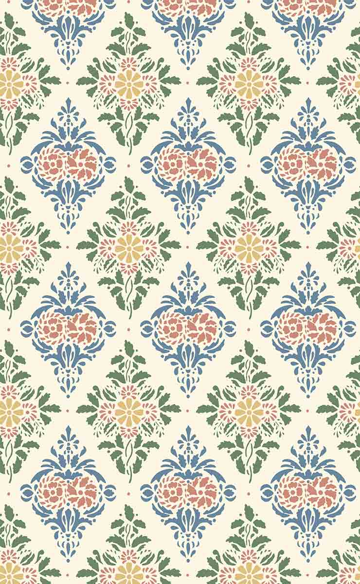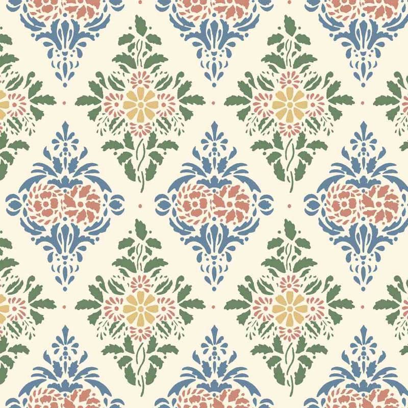 Gastgivars es un papel pintado con un estampado de damasco estilizado, inspirado directamente en una composición del artista sueco Jonas Wallström. Dos adornos dialogan con delicadeza: uno organizado en torno a rosetones sólidos, el otro marcado por un follaje flexible. El dibujo conserva una sensibilidad artesanal, perceptible en sus contornos irregulares. Aquí, Düro da nueva vida a un legado decorativo que ha sobrevivido al paso del tiempo en silencio.