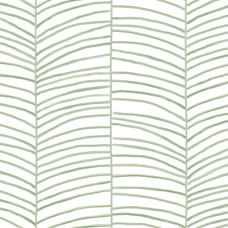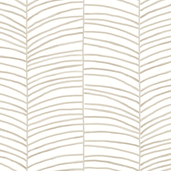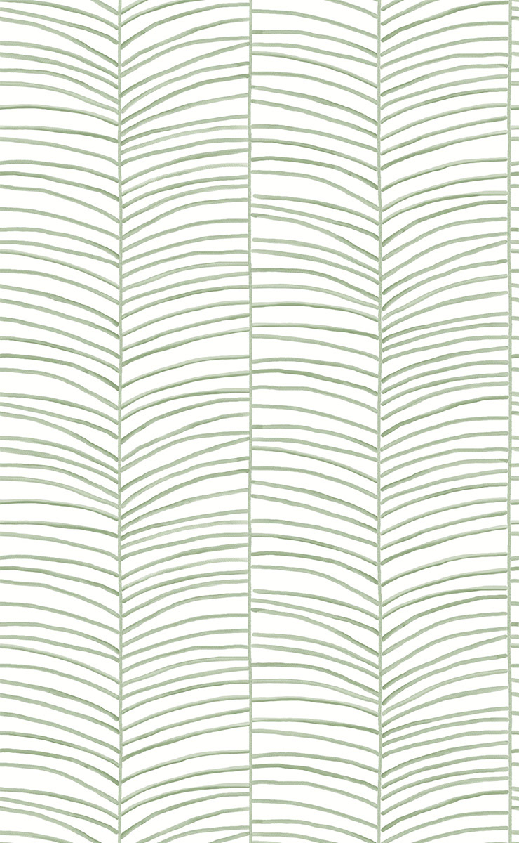 Cascade Palm Chevron es un papel pintado con un estampado vegetal estilizado, inspirado en las palmeras dibujadas con acuarela. Las líneas fluidas se despliegan en chevrones para crear un ritmo suave, equilibrado y minimalista. Cada trazo deja entrever la mano del artista, en una irregularidad controlada. Esta composición de York Wallcoverings refleja una ligereza plenamente asumida.
