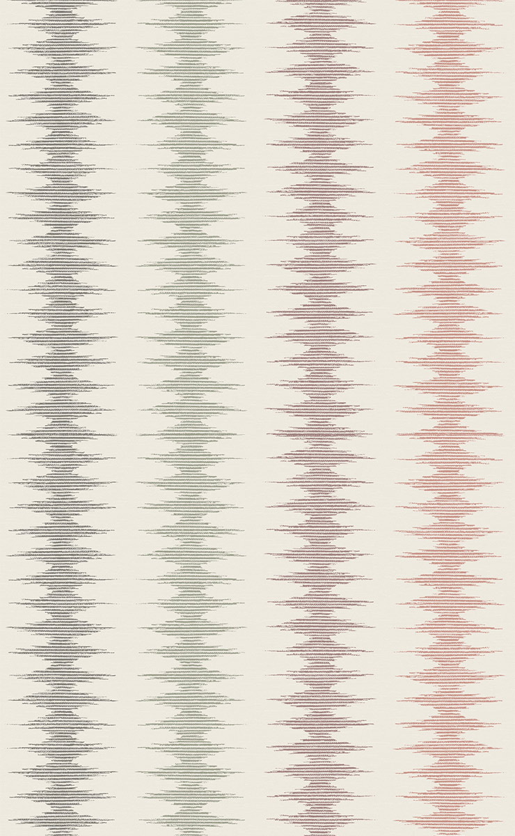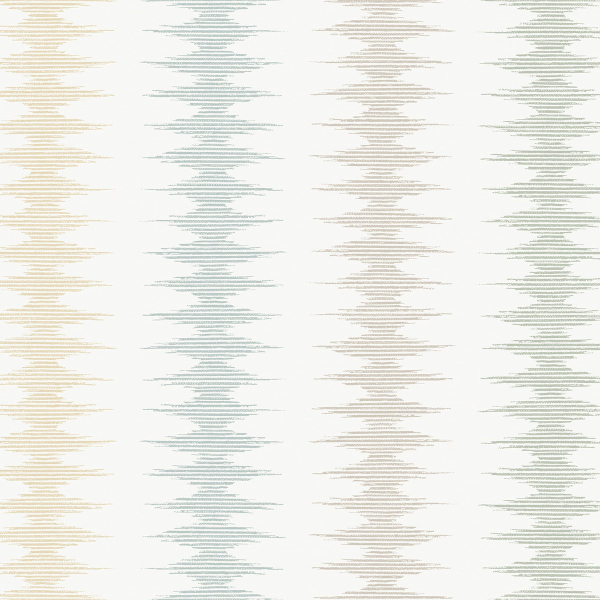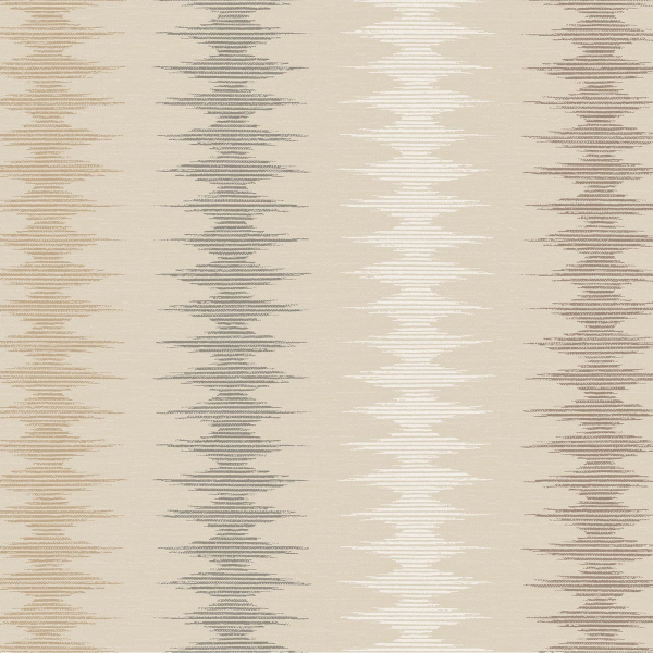 Woven Desert es un papel pintado estructurado por un patrón geométrico en zigzag, organizado en columnas verticales. Como ondas, las formas regulares crean un efecto de vibración tranquilo y repetitivo. Algunas de las rayas dentadas parecen bordadas o dibujadas a mano, lo que recuerda a la textura de una tela antigua. York Wallcoverings propone aquí una composición gráfica con un trazado visualmente relajante.