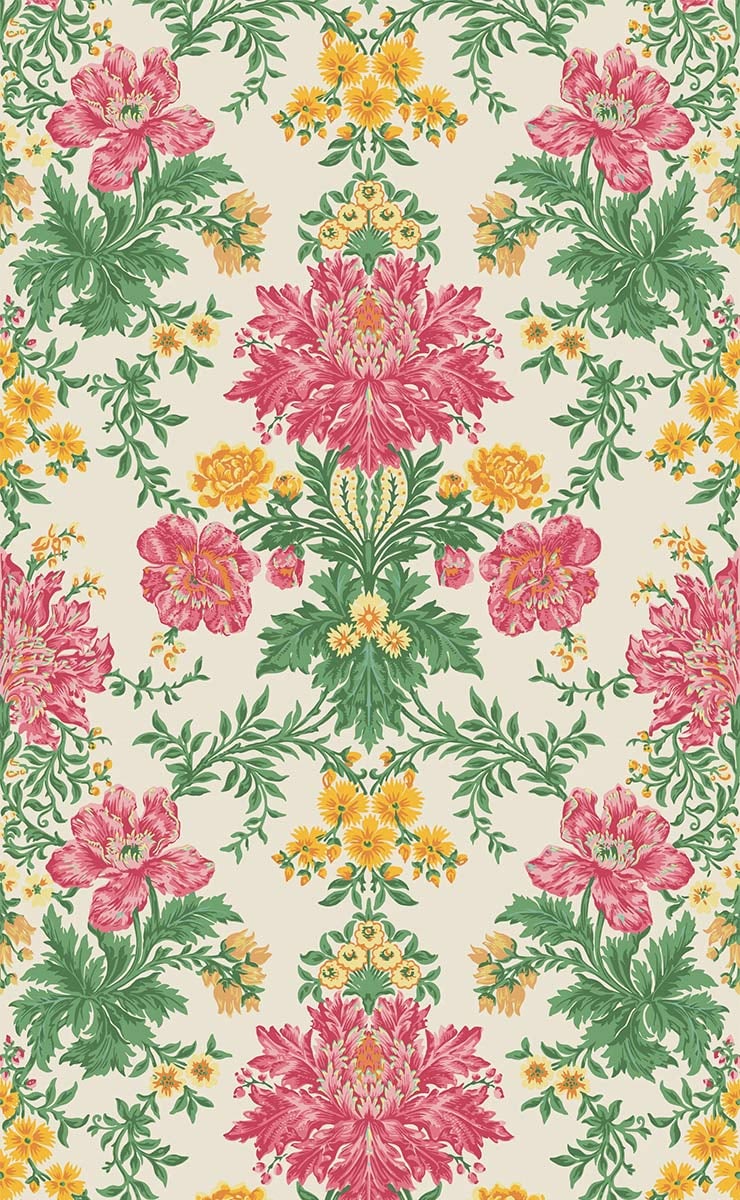 El papel pintado Poppies presenta un estampado floral estilizado con acentos clásicos, compuesto por majestuosos ramos simétricos. Las plantas, finamente ordenadas, forman un damasco real transpuesto a un universo vegetal. La ilustración sigue un ritmo estructurado, salpicado de delicadas hojas y exuberantes floraciones. Esta creación refleja el legado gráfico de Cole and Son.