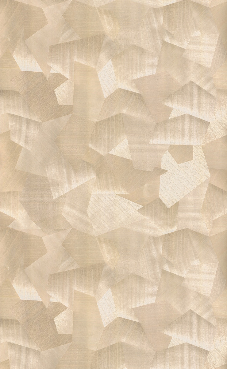 El papel pintado Facettes revela una construcción abstracta, marcada por un juego de líneas y formas irregulares. Cada elemento, de madera natural, juega con las vetas y las orientaciones de las fibras. Su estampado geométrico crea una ilusión de volumen y profundidad, lo que refuerza el carácter orgánico del diseño. Firmado por Nobilis, este modelo captura el espíritu de la marquetería contemporánea.