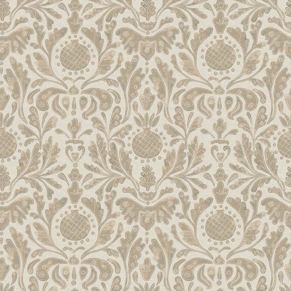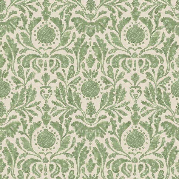 Castellane presenta un estampado de damasco vegetal en el que la forma estilizada de la granada dialoga con un follaje ornamental. Este papel pintado diseñado por Nina Campbell despliega una simetría decorativa inspirada en los tejidos antiguos. Cada elemento está resaltado por pequeños lunares que estructuran el espacio con delicadeza. El conjunto evoca una composición floral simbólica, densa y refinada a la vez.