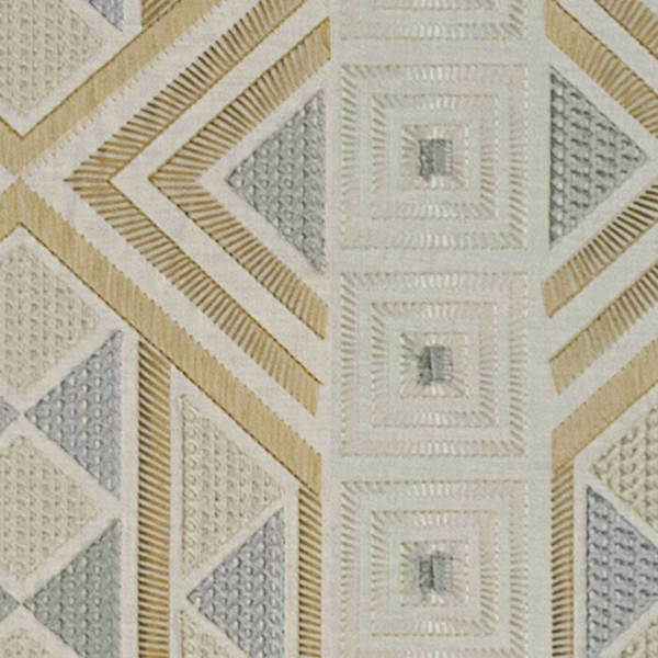 Filigrana d'Arte es un revestimiento mural con un motivo geométrico estructurado en bandas verticales, donde se suceden rombos calados y cuadrados concéntricos. El diseño riguroso se inspira en el filigrana, que recuerda la precisión de un trabajo de orfebrería. El diseño evoca un bordado realizado en una sutil mezcla de algodón y lino. El conjunto compone una decoración de líneas refinadas.