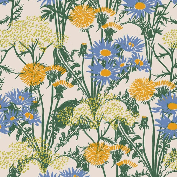 Un motivo floral estilizado recorre el papel pintado Picnic, editado por Coordonné. Vaporosas umbelas, cardos gráficos y margaritas florecidas se entrelazan en un exuberante jardín. Los tallos, esbozados con esmero, sostienen las corolas nervadas. El dibujo, sobre un fondo liso, capta el movimiento espontáneo de la flora silvestre.