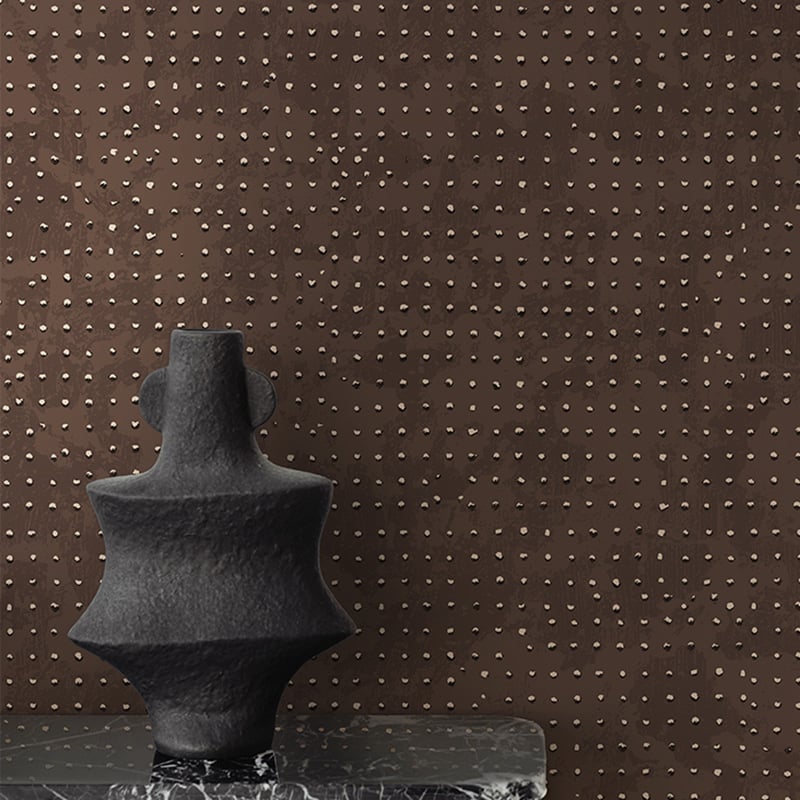 El papel pintado panorámico Solo Special presenta un patrón geométrico, compuesto por pequeños puntos en relieve. Los agujeros son el resultado de un gesto manual, realizado con una punta sobre una hoja. Este minucioso motivo se destaca sobre un fondo irregular, cuya textura revela sutiles variaciones. Code transforma la pared en una superficie vibrante, entre la huella artesanal y el rigor gráfico.
