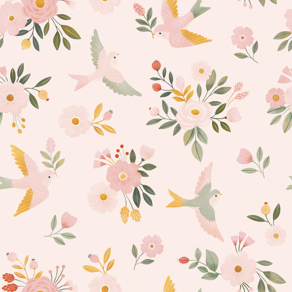 En el papel pintado Alysse Flying, palomas estilizadas se elevan entre una vegetación floreciente y gráfica. El motivo floral y animal, tratado con un toque lúdico, infunde una suavidad aérea a la decoración. Cada pluma, cada hoja, nace de una ilustración cuidada y legible. Este modelo refleja la sensibilidad creativa de Lilipinso, con un espíritu a la vez poético y controlado.