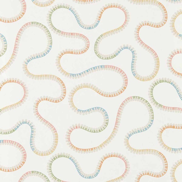 El papel pintado Bimble despliega líneas suaves con ondulaciones regulares. Una serie de pequeñas formas redondeadas, similares a puntos bordados, subraya su ritmo. Cada trazado revela un sutil degradado, que aporta profundidad y una impresión de movimiento natural. Este motivo sinusoidal, imaginado por Scion, se basa en una alternancia de curvas que estructuran la decoración.