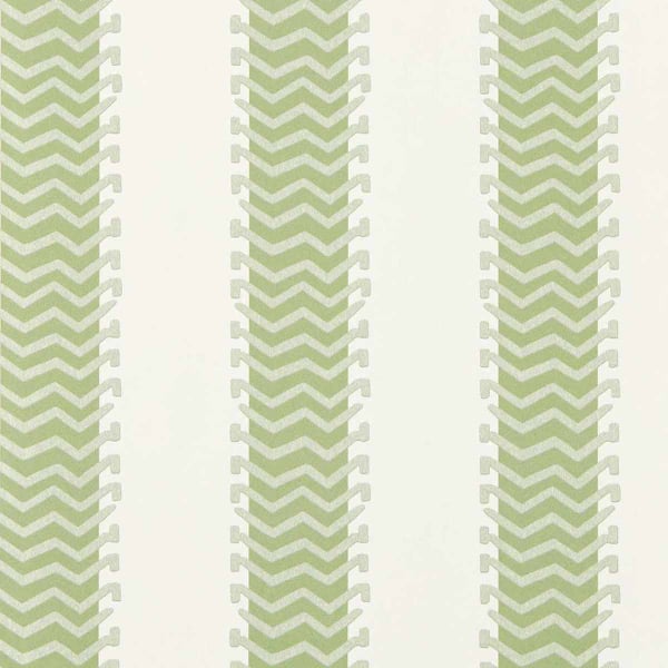 Bradgate es un papel pintado con un motivo geométrico, compuesto por columnas de chevrones alineados en verticales regulares. Los zigzags, nítidos y espaciados, alternan los espacios llenos y los intervalos. Cada línea sigue un ritmo riguroso, subrayado por la variación de grosor en los trazos. El conjunto está cuidadosamente dispuesto con una repetición precisa, marcada por un sutil efecto de relieve.