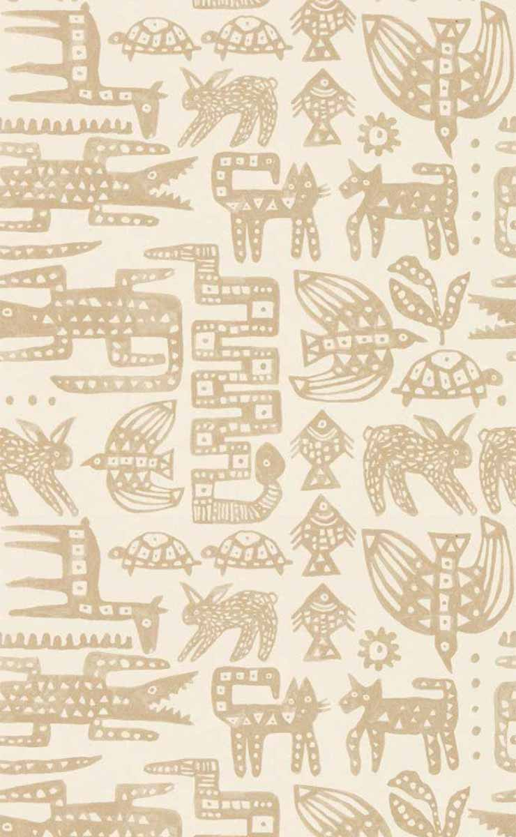 Una escena repleta de animales estilizados se organiza en el papel pintado Twycross realizado por Scion. Cocodrilos alargados, ciervos inmovilizados, tortugas redondas y pájaros con las alas extendidas componen el motivo. Inspirada en una pintura a la tinta, esta decoración refleja un enfoque gráfico intuitivo, lleno de suavidad y fantasía. Los dibujos evocan recuerdos de la infancia y paisajes imaginarios.