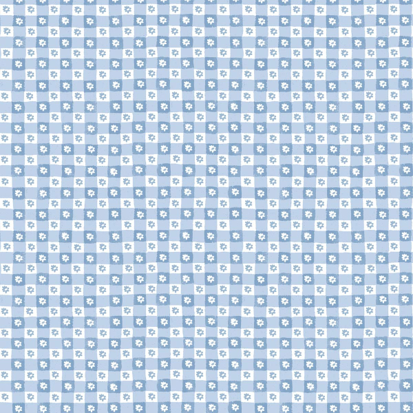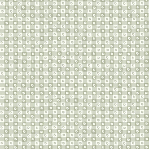 con un estampado de damero floral, inspirado en el tradicional vichí. Cada casilla alterna entre un plano liso y una pequeña margarita ilustrada, en un estilo a la vez geométrico y campestre. Esta composición regular evoca un tejido clásico reinterpretado con sobriedad. Editado por Rifle Paper Co., este revestimiento mural presenta una estructura medida con un encanto discreto.