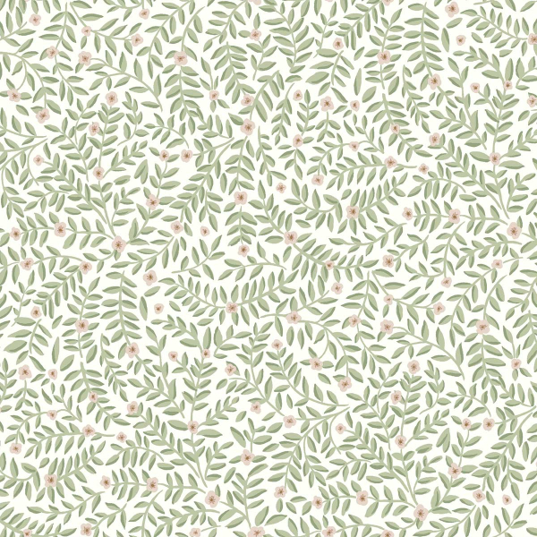 Un denso motivo floral se extiende sobre el papel pintado adhesivo Elodie, editado por Rifle Paper Co. Delgados tallos ondulantes, adornados con follaje flexible y flores en miniatura, recorren la superficie. Las formas vegetales se entrelazan con naturalidad, como si se vieran arrastradas por un movimiento ligero y continuo. Este revestimiento mural adhesivo se inspira en un delicado herbario, marcado por la repetición de detalles botánicos.